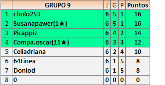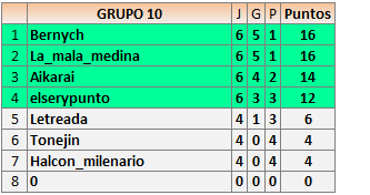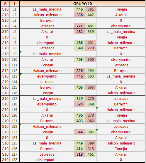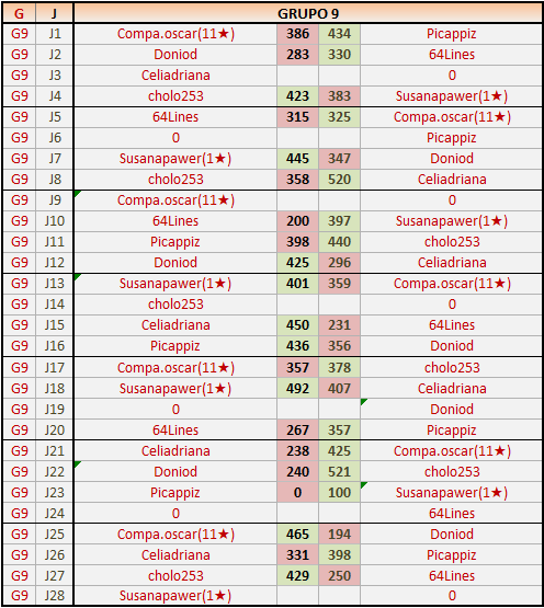 Deja un comentarioEn está página se irán publicando los resultados de las diferentes partidas, siendo ambos jugadores responsables de subirlos o de comprobar que ya hayan sido publicados insertando un COMENTARIO en la parte inferior de la pantalla (opción “Deja tu comentario”), indicando el nombre de los dos jugadores y los puntos obtenidos en la partida.