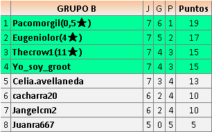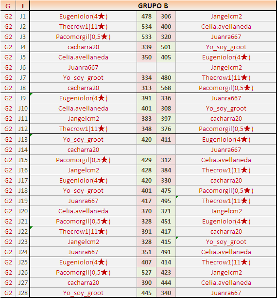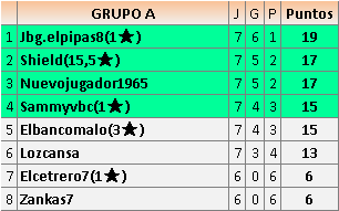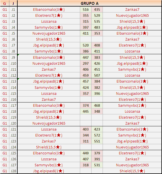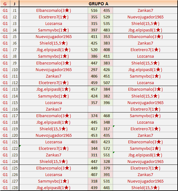 Deja un comentarioEn está página se irán publicando los resultados de las diferentes partidas, siendo ambos jugadores responsables de subirlos o de comprobar que ya hayan sido publicados insertando un COMENTARIO en la parte inferior de la pantalla (opción “Deja tu comentario”), indicando el nombre de los dos jugadores y los puntos obtenidos en la partida.