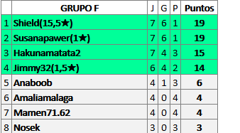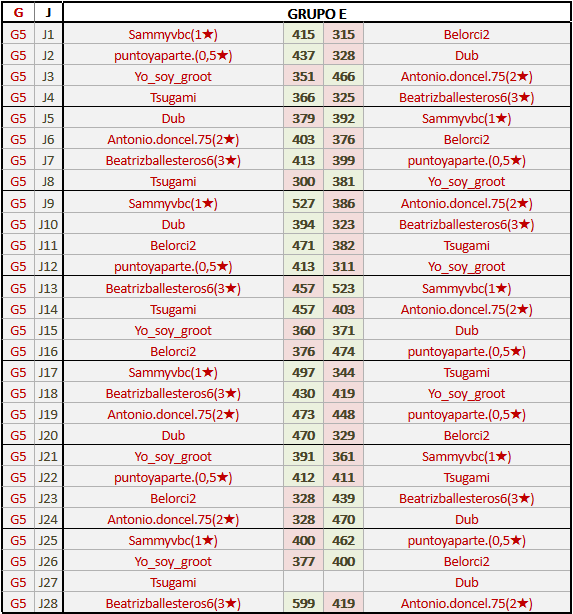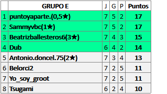 Deja un comentarioEn está página se irán publicando los resultados de las diferentes partidas, siendo ambos jugadores responsables de subirlos o de comprobar que ya hayan sido publicados insertando un COMENTARIO en la parte inferior de la pantalla (opción “Deja tu comentario”), indicando el nombre de los dos jugadores y los puntos obtenidos en la partida.