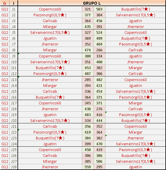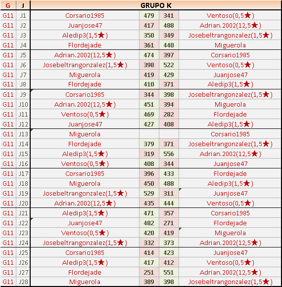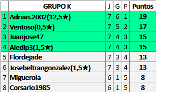 Deja un comentarioEn está página se irán publicando los resultados de las diferentes partidas, siendo ambos jugadores responsables de subirlos o de comprobar que ya hayan sido publicados insertando un COMENTARIO en la parte inferior de la pantalla (opción “Deja tu comentario”), indicando el nombre de los dos jugadores y los puntos obtenidos en la partida.