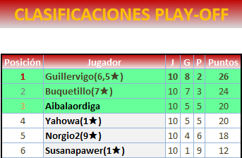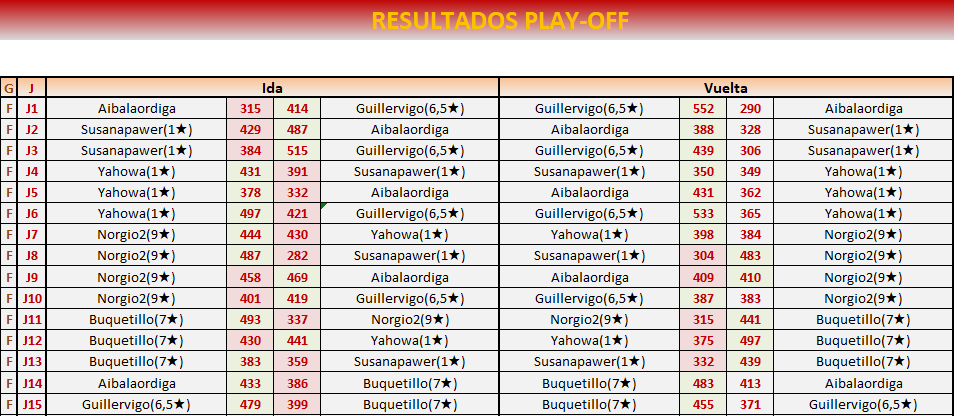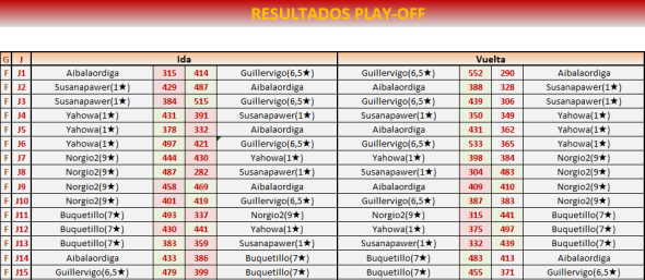 FIN VUELTA PLAY OFF: 21 de MARZO a las 21.00
