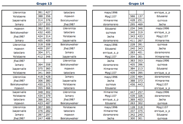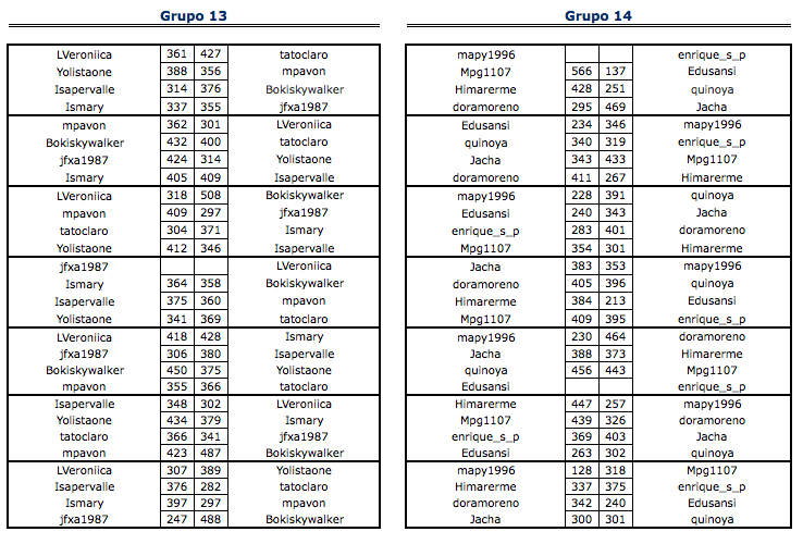 En está página se irán indicando los resultados de las diferentes partidas. Lo único que tienes que hacer es insertar un comentario en la parte inferior de la pantalla (“Deja tu comentario”) indicando el nombre de los dos usuarios y los puntos obtenidos por ambos en la partida. El vencedor de cada partida será el encargado de comunicar el resultado en este apartado.
