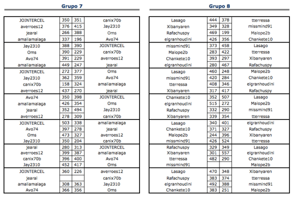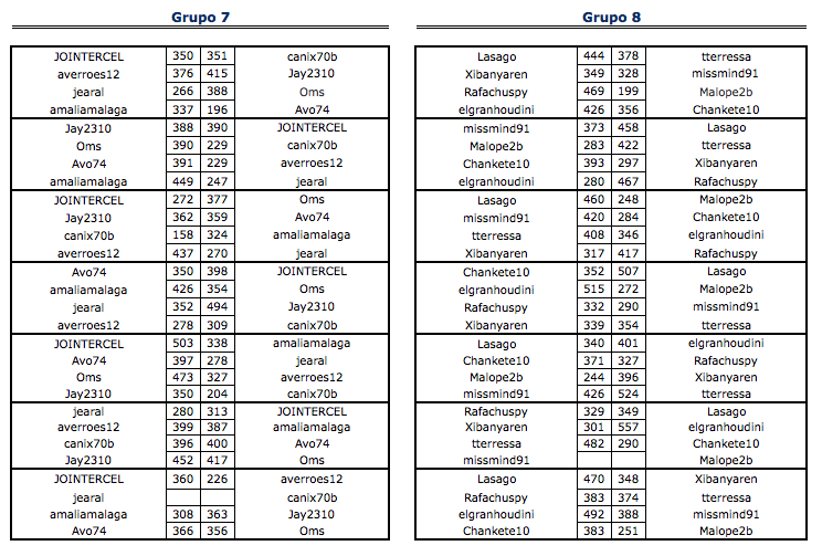 En está página se irán indicando los resultados de las diferentes partidas. Lo único que tienes que hacer es insertar un comentario en la parte inferior de la pantalla (“Deja tu comentario”) indicando el nombre de los dos usuarios y los puntos obtenidos por ambos en la partida. El vencedor de cada partida será el encargado de comunicar el resultado en este apartado.