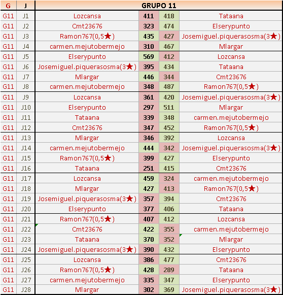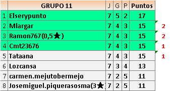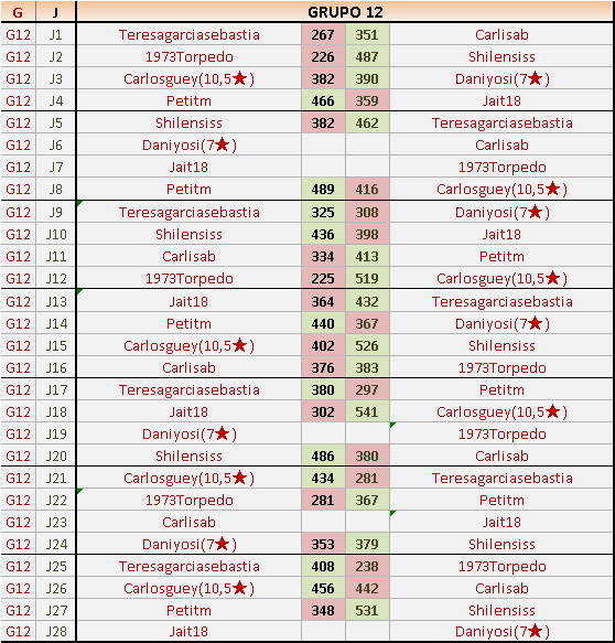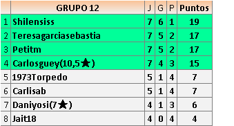 Deja un comentarioEn está página se irán publicando los resultados de las diferentes partidas, siendo ambos jugadores responsables de subirlos o de comprobar que ya hayan sido publicados insertando un COMENTARIO en la parte inferior de la pantalla (opción “Deja tu comentario”), indicando el nombre de los dos jugadores y los puntos obtenidos en la partida.