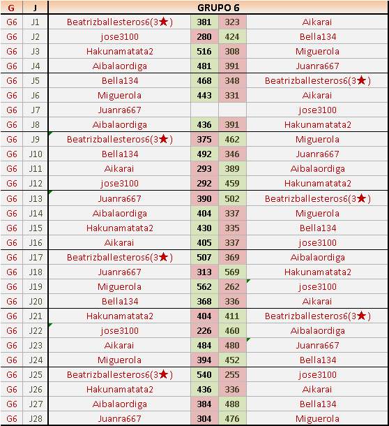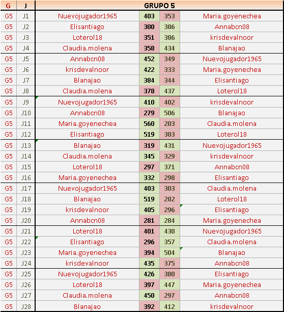 Deja un comentarioEn está página se irán publicando los resultados de las diferentes partidas, siendo ambos jugadores responsables de subirlos o de comprobar que ya hayan sido publicados insertando un COMENTARIO en la parte inferior de la pantalla (opción “Deja tu comentario”), indicando el nombre de los dos jugadores y los puntos obtenidos en la partida.