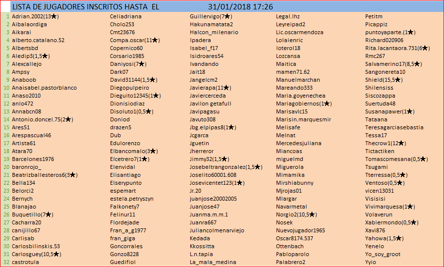 HASTA EL 15 DE ENERO O UN TOPE DE 80 JUGADORES