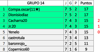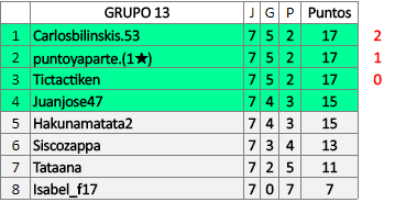 Deja un comentarioEn está página se irán publicando los resultados de las diferentes partidas, siendo ambos jugadores responsables de subirlos o de comprobar que ya hayan sido publicados insertando un COMENTARIO en la parte inferior de la pantalla (opción “Deja tu comentario”), indicando el nombre de los dos jugadores y los puntos obtenidos en la partida.