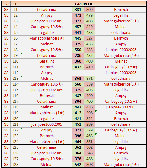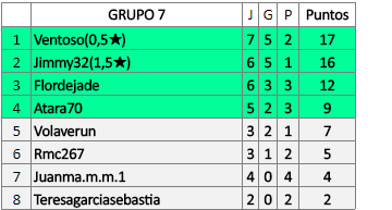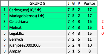 Deja un comentarioEn está página se irán publicando los resultados de las diferentes partidas, siendo ambos jugadores responsables de subirlos o de comprobar que ya hayan sido publicados insertando un COMENTARIO en la parte inferior de la pantalla (opción “Deja tu comentario”), indicando el nombre de los dos jugadores y los puntos obtenidos en la partida.