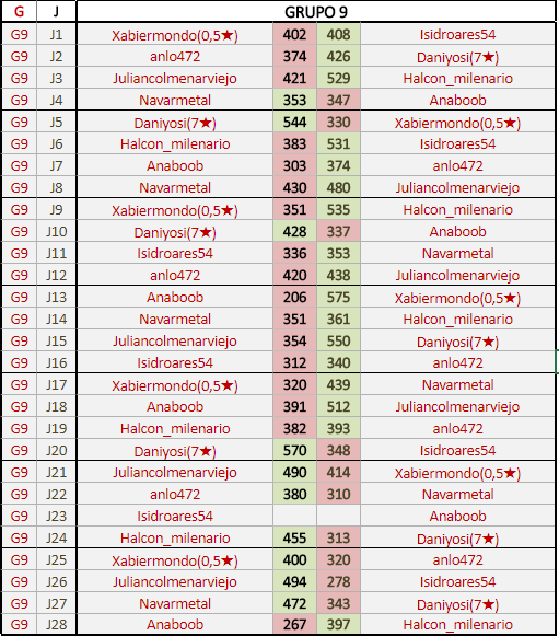 En está página se irán publicando los resultados de las diferentes partidas, siendo ambos jugadores responsables de subirlos o de comprobar que ya hayan sido publicados insertando un COMENTARIO en la parte inferior de la pantalla (opción “Deja tu comentario”), indicando el nombre de los dos jugadores y los puntos obtenidos en la partida.