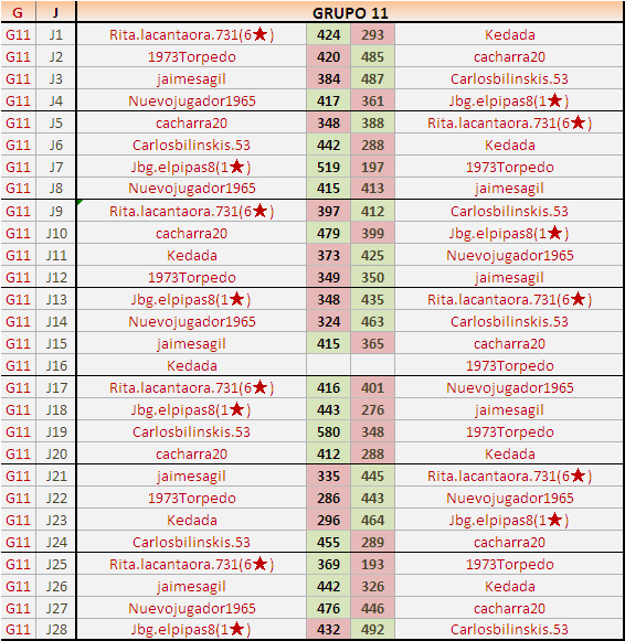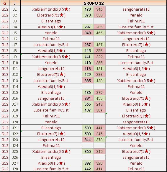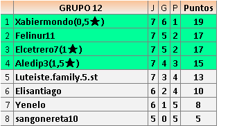 Deja un comentarioEn está página se irán publicando los resultados de las diferentes partidas, siendo ambos jugadores responsables de subirlos o de comprobar que ya hayan sido publicados insertando un COMENTARIO en la parte inferior de la pantalla (opción “Deja tu comentario”), indicando el nombre de los dos jugadores y los puntos obtenidos en la partida.