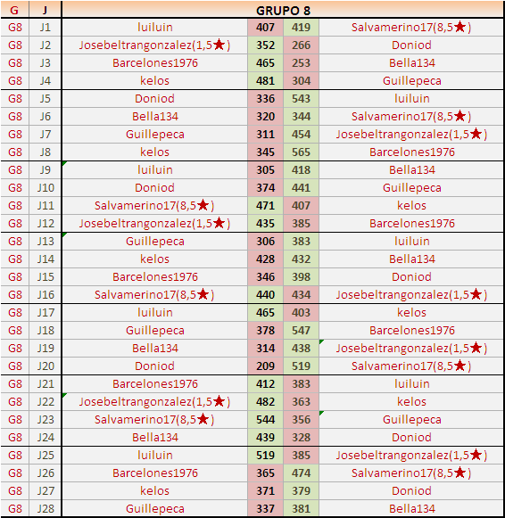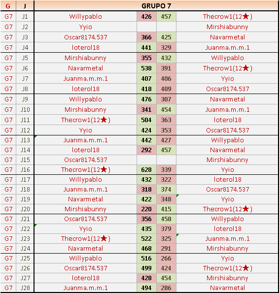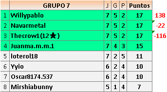 Deja un comentarioEn está página se irán publicando los resultados de las diferentes partidas, siendo ambos jugadores responsables de subirlos o de comprobar que ya hayan sido publicados insertando un COMENTARIO en la parte inferior de la pantalla (opción “Deja tu comentario”), indicando el nombre de los dos jugadores y los puntos obtenidos en la partida.