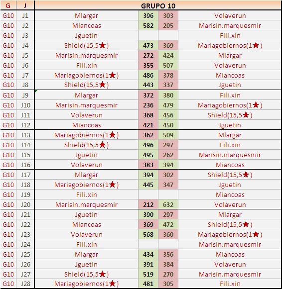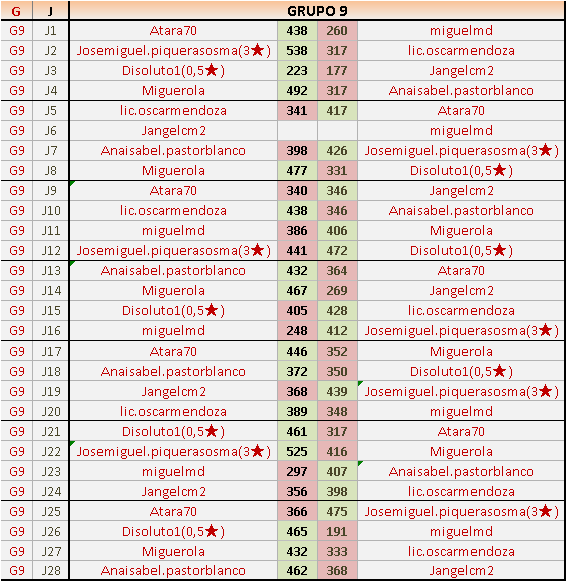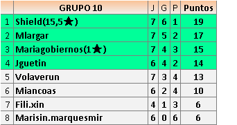 Deja un comentarioEn está página se irán publicando los resultados de las diferentes partidas, siendo ambos jugadores responsables de subirlos o de comprobar que ya hayan sido publicados insertando un COMENTARIO en la parte inferior de la pantalla (opción “Deja tu comentario”), indicando el nombre de los dos jugadores y los puntos obtenidos en la partida.