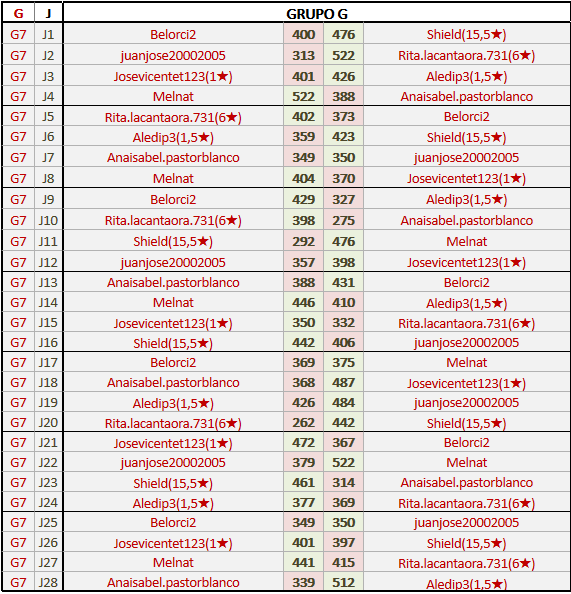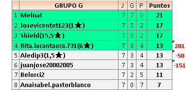 Deja un comentarioEn está página se irán publicando los resultados de las diferentes partidas, siendo ambos jugadores responsables de subirlos o de comprobar que ya hayan sido publicados insertando un COMENTARIO en la parte inferior de la pantalla (opción “Deja tu comentario”), indicando el nombre de los dos jugadores y los puntos obtenidos en la partida.