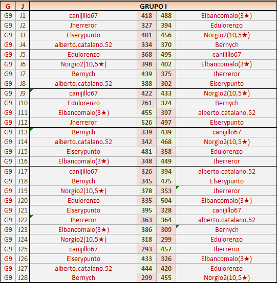 En está página se irán publicando los resultados de las diferentes partidas, siendo ambos jugadores responsables de subirlos o de comprobar que ya hayan sido publicados insertando un COMENTARIO en la parte inferior de la pantalla (opción “Deja tu comentario”), indicando el nombre de los dos jugadores y los puntos obtenidos en la partida.