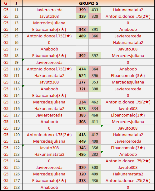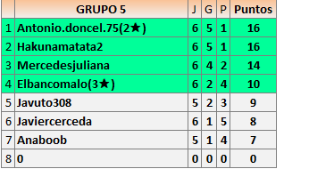 Deja un comentarioEn está página se irán publicando los resultados de las diferentes partidas, siendo ambos jugadores responsables de subirlos o de comprobar que ya hayan sido publicados insertando un COMENTARIO en la parte inferior de la pantalla (opción “Deja tu comentario”), indicando el nombre de los dos jugadores y los puntos obtenidos en la partida.