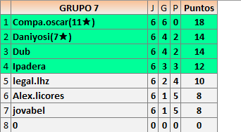 Deja un comentarioEn está página se irán publicando los resultados de las diferentes partidas, siendo ambos jugadores responsables de subirlos o de comprobar que ya hayan sido publicados insertando un COMENTARIO en la parte inferior de la pantalla (opción “Deja tu comentario”), indicando el nombre de los dos jugadores y los puntos obtenidos en la partida.