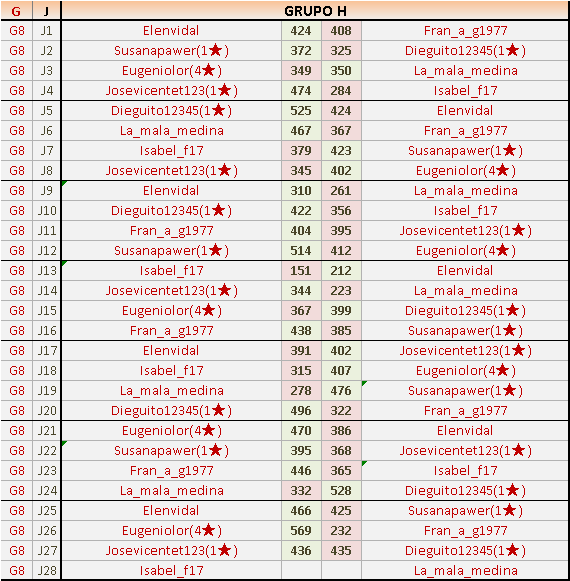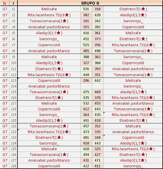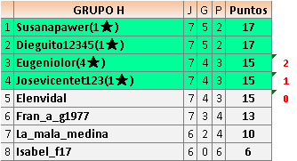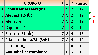 Deja un comentarioEn está página se irán publicando los resultados de las diferentes partidas, siendo ambos jugadores responsables de subirlos o de comprobar que ya hayan sido publicados insertando un COMENTARIO en la parte inferior de la pantalla (opción “Deja tu comentario”), indicando el nombre de los dos jugadores y los puntos obtenidos en la partida.