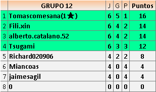 Deja un comentarioEn está página se irán publicando los resultados de las diferentes partidas, siendo ambos jugadores responsables de subirlos o de comprobar que ya hayan sido publicados insertando un COMENTARIO en la parte inferior de la pantalla (opción “Deja tu comentario”), indicando el nombre de los dos jugadores y los puntos obtenidos en la partida.