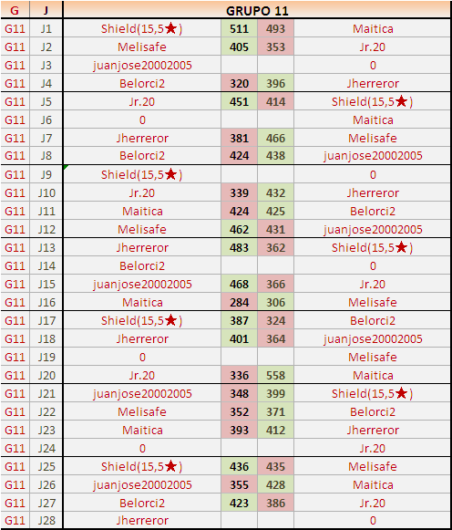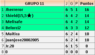 Deja un comentarioEn está página se irán publicando los resultados de las diferentes partidas, siendo ambos jugadores responsables de subirlos o de comprobar que ya hayan sido publicados insertando un COMENTARIO en la parte inferior de la pantalla (opción “Deja tu comentario”), indicando el nombre de los dos jugadores y los puntos obtenidos en la partida.