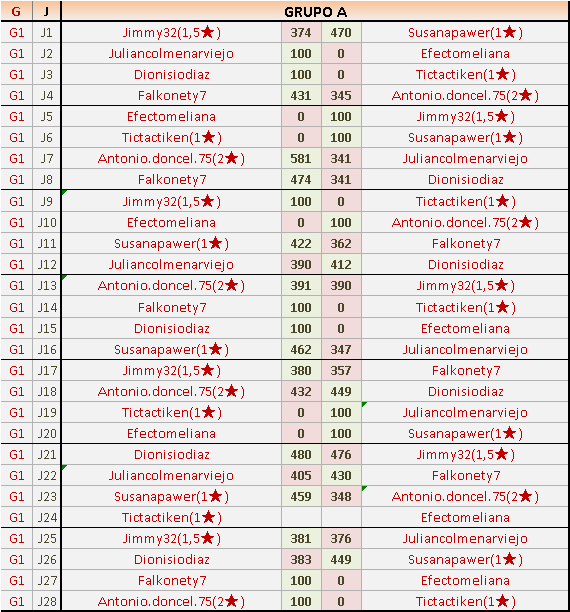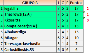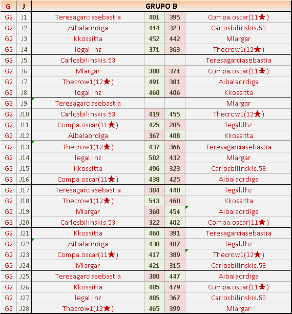 Deja un comentarioEn está página se irán publicando los resultados de las diferentes partidas, siendo ambos jugadores responsables de subirlos o de comprobar que ya hayan sido publicados insertando un COMENTARIO en la parte inferior de la pantalla (opción “Deja tu comentario”), indicando el nombre de los dos jugadores y los puntos obtenidos en la partida.