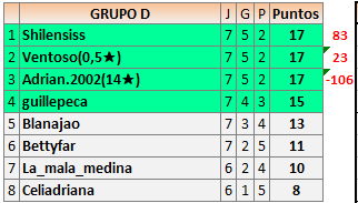 Deja un comentarioEn está página se irán publicando los resultados de las diferentes partidas, siendo ambos jugadores responsables de subirlos o de comprobar que ya hayan sido publicados insertando un COMENTARIO en la parte inferior de la pantalla (opción “Deja tu comentario”), indicando el nombre de los dos jugadores y los puntos obtenidos en la partida.