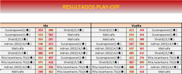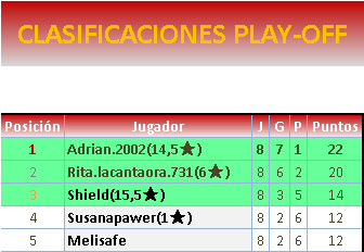 En los play off se mantendran ocultos los resultados para que ningun jugador especule con ellos.