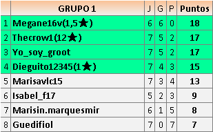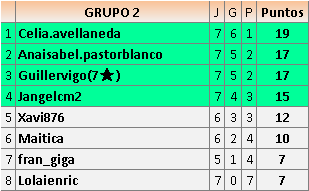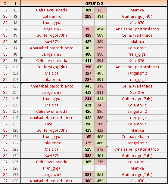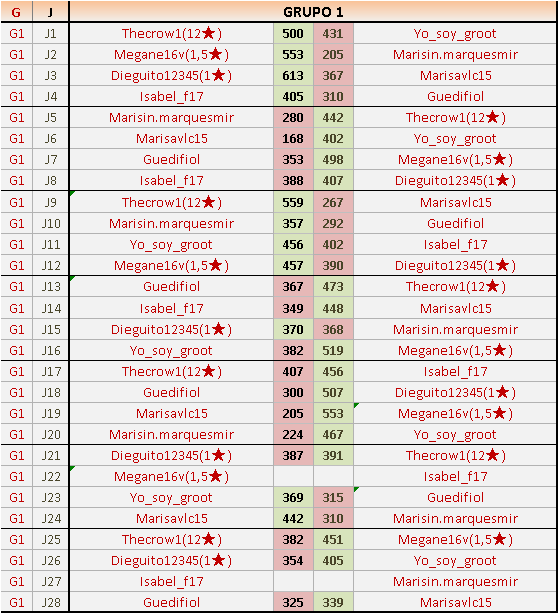 Deja un comentarioEn está página se irán publicando los resultados de las diferentes partidas, siendo ambos jugadores responsables de subirlos o de comprobar que ya hayan sido publicados insertando un COMENTARIO en la parte inferior de la pantalla (opción “Deja tu comentario”), indicando el nombre de los dos jugadores y los puntos obtenidos en la partida.
