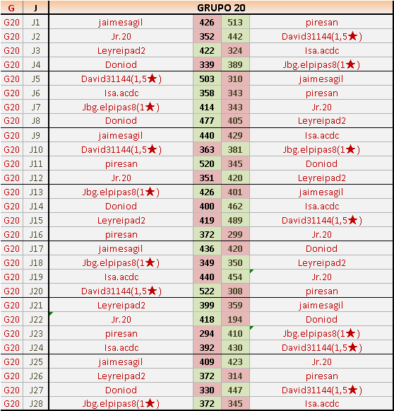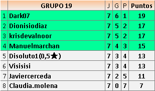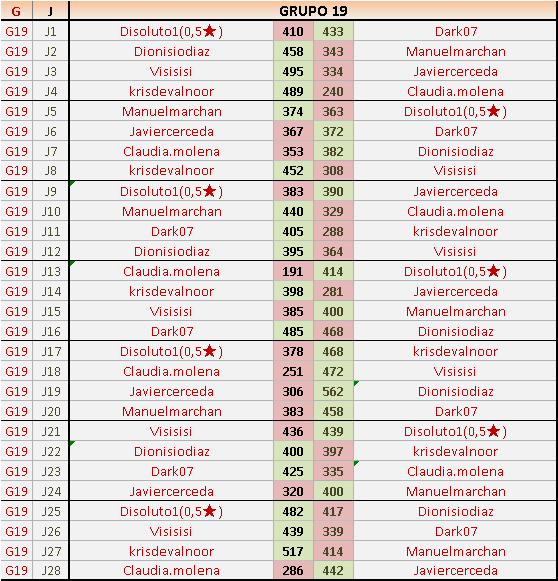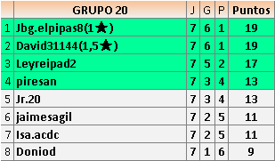 Deja un comentarioEn está página se irán publicando los resultados de las diferentes partidas, siendo ambos jugadores responsables de subirlos o de comprobar que ya hayan sido publicados insertando un COMENTARIO en la parte inferior de la pantalla (opción “Deja tu comentario”), indicando el nombre de los dos jugadores y los puntos obtenidos en la partida.