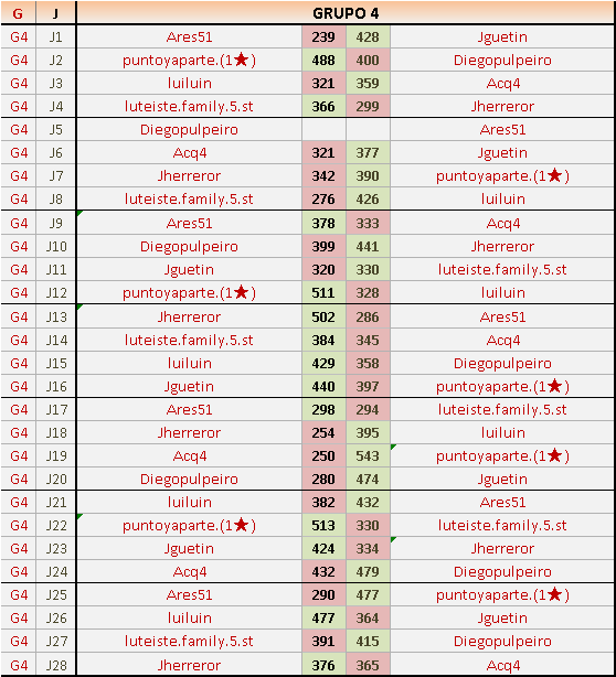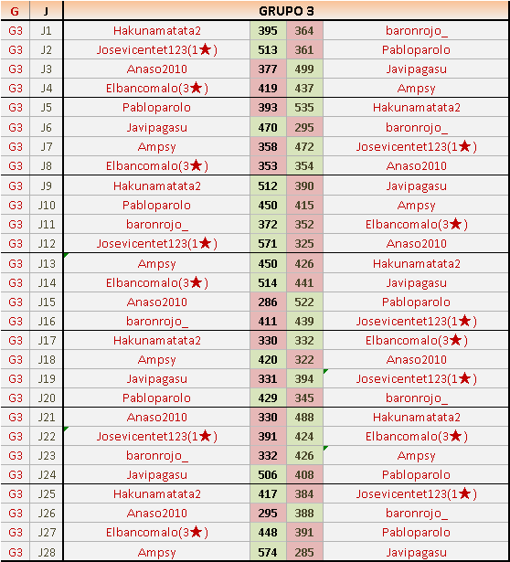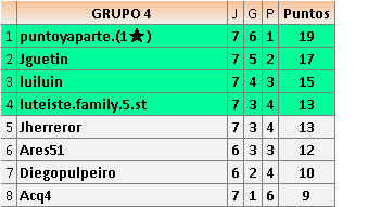 Deja un comentarioEn está página se irán publicando los resultados de las diferentes partidas, siendo ambos jugadores responsables de subirlos o de comprobar que ya hayan sido publicados insertando un COMENTARIO en la parte inferior de la pantalla (opción “Deja tu comentario”), indicando el nombre de los dos jugadores y los puntos obtenidos en la partida.