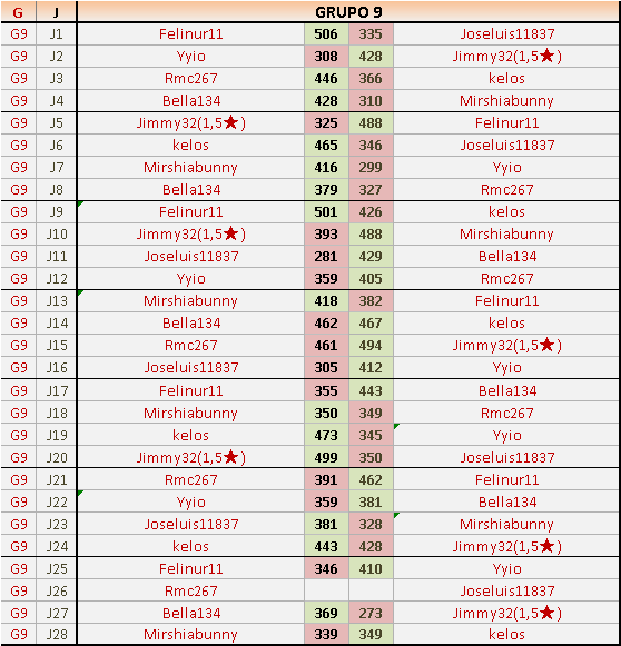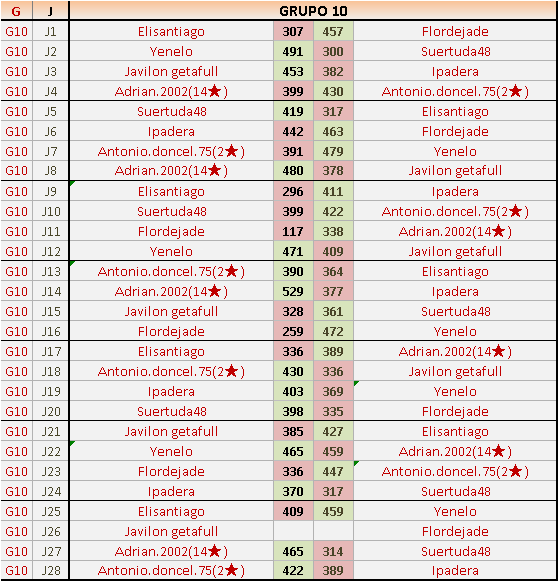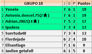 Deja un comentarioEn está página se irán publicando los resultados de las diferentes partidas, siendo ambos jugadores responsables de subirlos o de comprobar que ya hayan sido publicados insertando un COMENTARIO en la parte inferior de la pantalla (opción “Deja tu comentario”), indicando el nombre de los dos jugadores y los puntos obtenidos en la partida.