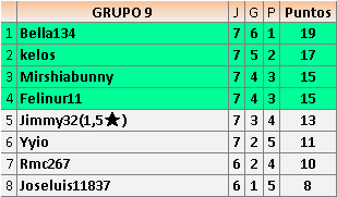 Deja un comentarioEn está página se irán publicando los resultados de las diferentes partidas, siendo ambos jugadores responsables de subirlos o de comprobar que ya hayan sido publicados insertando un COMENTARIO en la parte inferior de la pantalla (opción “Deja tu comentario”), indicando el nombre de los dos jugadores y los puntos obtenidos en la partida.