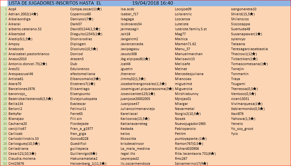 HASTA EL 15 DE ENERO O UN TOPE DE 80 JUGADORES