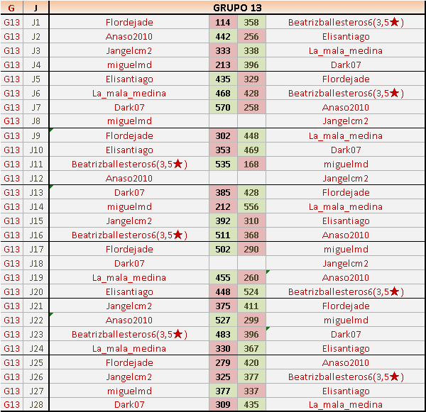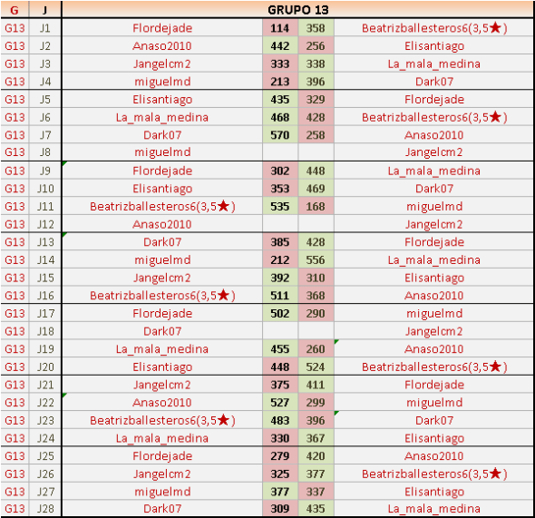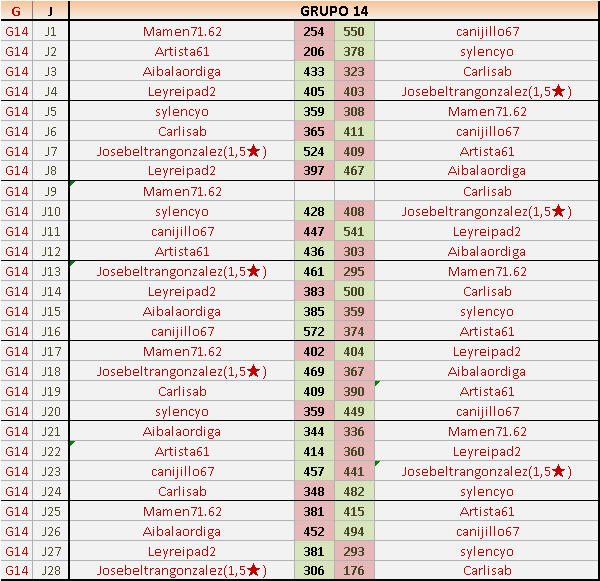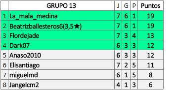 Deja un comentarioEn está página se irán publicando los resultados de las diferentes partidas, siendo ambos jugadores responsables de subirlos o de comprobar que ya hayan sido publicados insertando un COMENTARIO en la parte inferior de la pantalla (opción “Deja tu comentario”), indicando el nombre de los dos jugadores y los puntos obtenidos en la partida.