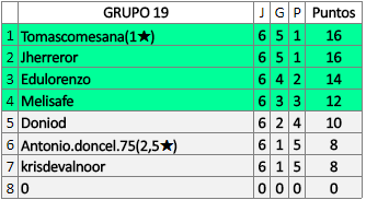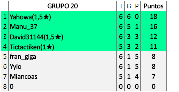 Deja un comentarioEn está página se irán publicando los resultados de las diferentes partidas, siendo ambos jugadores responsables de subirlos o de comprobar que ya hayan sido publicados insertando un COMENTARIO en la parte inferior de la pantalla (opción “Deja tu comentario”), indicando el nombre de los dos jugadores y los puntos obtenidos en la partida.