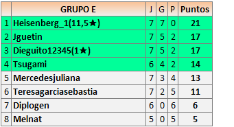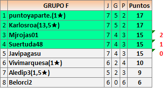 Deja un comentarioEn está página se irán publicando los resultados de las diferentes partidas, siendo ambos jugadores responsables de subirlos o de comprobar que ya hayan sido publicados insertando un COMENTARIO en la parte inferior de la pantalla (opción “Deja tu comentario”), indicando el nombre de los dos jugadores y los puntos obtenidos en la partida.