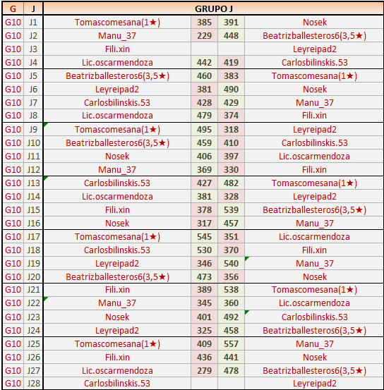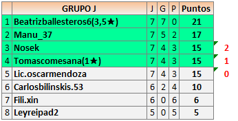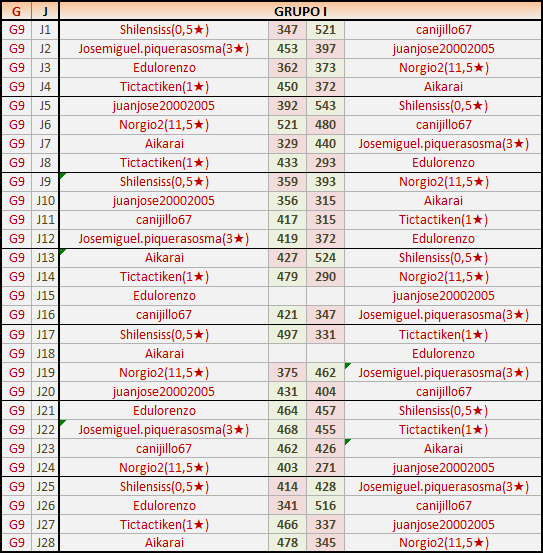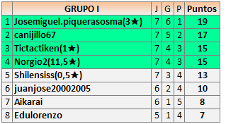 Deja un comentarioEn está página se irán publicando los resultados de las diferentes partidas, siendo ambos jugadores responsables de subirlos o de comprobar que ya hayan sido publicados insertando un COMENTARIO en la parte inferior de la pantalla (opción “Deja tu comentario”), indicando el nombre de los dos jugadores y los puntos obtenidos en la partida.