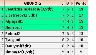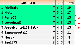 Deja un comentarioEn está página se irán publicando los resultados de las diferentes partidas, siendo ambos jugadores responsables de subirlos o de comprobar que ya hayan sido publicados insertando un COMENTARIO en la parte inferior de la pantalla (opción “Deja tu comentario”), indicando el nombre de los dos jugadores y los puntos obtenidos en la partida.