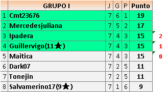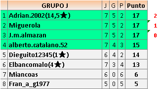 Deja un comentarioEn está página se irán publicando los resultados de las diferentes partidas, siendo ambos jugadores responsables de subirlos o de comprobar que ya hayan sido publicados insertando un COMENTARIO en la parte inferior de la pantalla (opción “Deja tu comentario”), indicando el nombre de los dos jugadores y los puntos obtenidos en la partida.