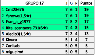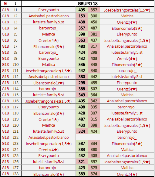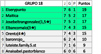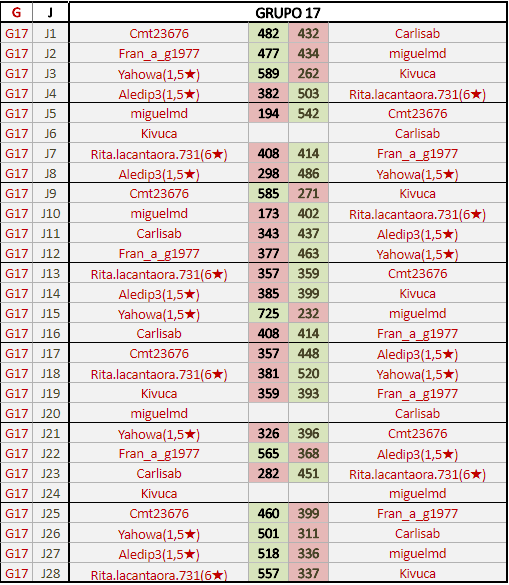 En está página se irán publicando los resultados de las diferentes partidas, siendo ambos jugadores responsables de subirlos o de comprobar que ya hayan sido publicados insertando un COMENTARIO en la parte inferior de la pantalla (opción “Deja tu comentario”), indicando el nombre de los dos jugadores y los puntos obtenidos en la partida.