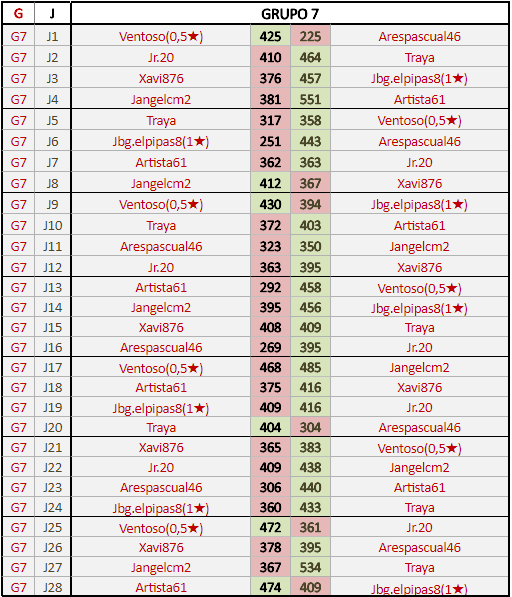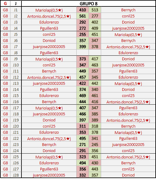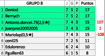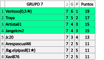 Deja un comentarioEn está página se irán publicando los resultados de las diferentes partidas, siendo ambos jugadores responsables de subirlos o de comprobar que ya hayan sido publicados insertando un COMENTARIO en la parte inferior de la pantalla (opción “Deja tu comentario”), indicando el nombre de los dos jugadores y los puntos obtenidos en la partida.