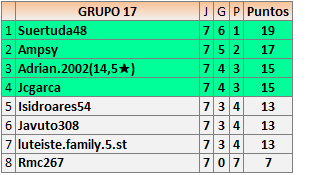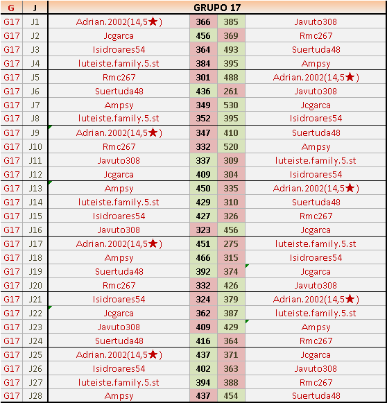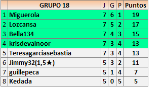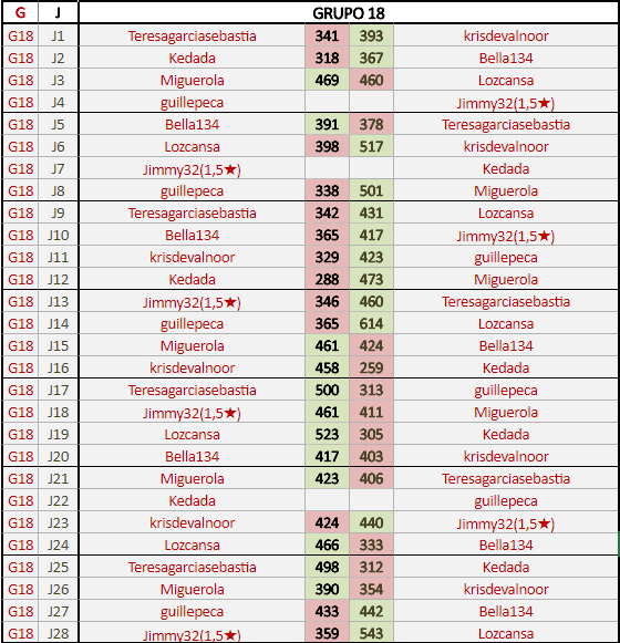 Deja un comentarioEn está página se irán publicando los resultados de las diferentes partidas, siendo ambos jugadores responsables de subirlos o de comprobar que ya hayan sido publicados insertando un COMENTARIO en la parte inferior de la pantalla (opción “Deja tu comentario”), indicando el nombre de los dos jugadores y los puntos obtenidos en la partida.
