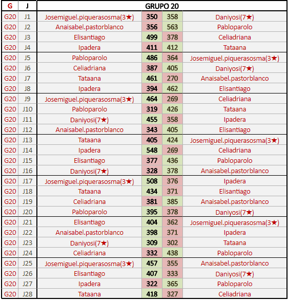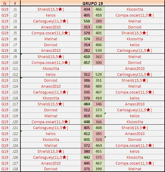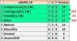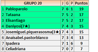 Deja un comentarioEn está página se irán publicando los resultados de las diferentes partidas, siendo ambos jugadores responsables de subirlos o de comprobar que ya hayan sido publicados insertando un COMENTARIO en la parte inferior de la pantalla (opción “Deja tu comentario”), indicando el nombre de los dos jugadores y los puntos obtenidos en la partida.