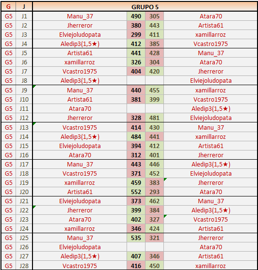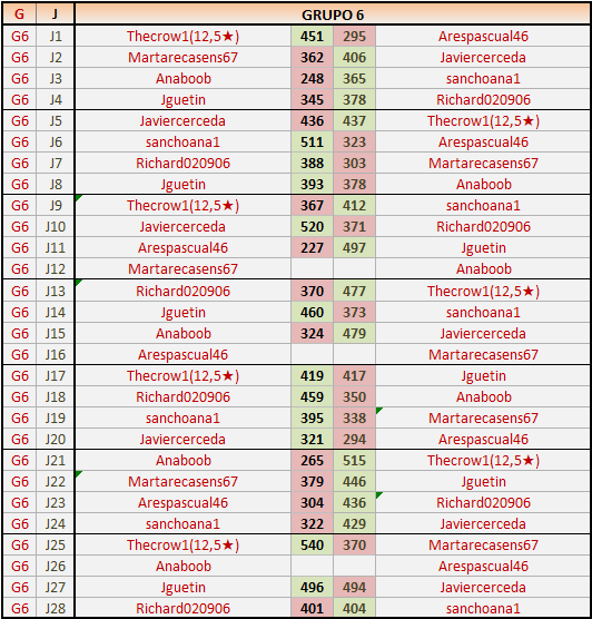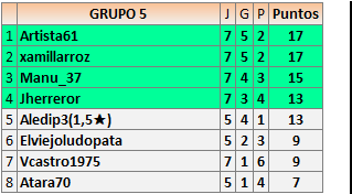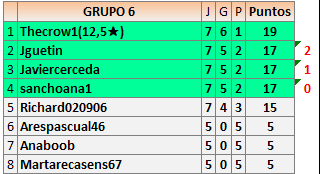 Deja un comentarioEn está página se irán publicando los resultados de las diferentes partidas, siendo ambos jugadores responsables de subirlos o de comprobar que ya hayan sido publicados insertando un COMENTARIO en la parte inferior de la pantalla (opción “Deja tu comentario”), indicando el nombre de los dos jugadores y los puntos obtenidos en la partida.