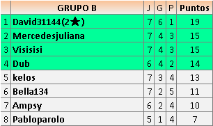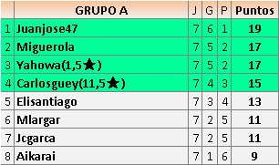 Deja un comentarioEn está página se irán publicando los resultados de las diferentes partidas, siendo ambos jugadores responsables de subirlos o de comprobar que ya hayan sido publicados insertando un COMENTARIO en la parte inferior de la pantalla (opción “Deja tu comentario”), indicando el nombre de los dos jugadores y los puntos obtenidos en la partida.