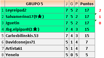 Deja un comentarioEn está página se irán publicando los resultados de las diferentes partidas, siendo ambos jugadores responsables de subirlos o de comprobar que ya hayan sido publicados insertando un COMENTARIO en la parte inferior de la pantalla (opción “Deja tu comentario”), indicando el nombre de los dos jugadores y los puntos obtenidos en la partida.