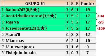 En está página se irán publicando los resultados de las diferentes partidas, siendo ambos jugadores responsables de subirlos o de comprobar que ya hayan sido publicados insertando un COMENTARIO en la parte inferior de la pantalla (opción “Deja tu comentario”), indicando el nombre de los dos jugadores y los puntos obtenidos en la partida.