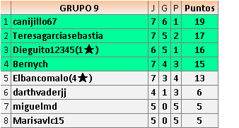 En está página se irán publicando los resultados de las diferentes partidas, siendo ambos jugadores responsables de subirlos o de comprobar que ya hayan sido publicados insertando un COMENTARIO en la parte inferior de la pantalla (opción “Deja tu comentario”), indicando el nombre de los dos jugadores y los puntos obtenidos en la partida.