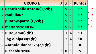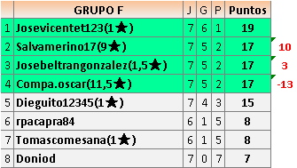 Deja un comentarioEn está página se irán publicando los resultados de las diferentes partidas, siendo ambos jugadores responsables de subirlos o de comprobar que ya hayan sido publicados insertando un COMENTARIO en la parte inferior de la pantalla (opción “Deja tu comentario”), indicando el nombre de los dos jugadores y los puntos obtenidos en la partida.