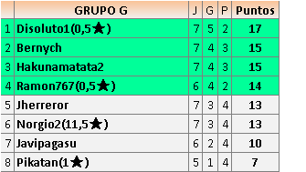 En está página se irán publicando los resultados de las diferentes partidas, siendo ambos jugadores responsables de subirlos o de comprobar que ya hayan sido publicados insertando un COMENTARIO en la parte inferior de la pantalla (opción “Deja tu comentario”), indicando el nombre de los dos jugadores y los puntos obtenidos en la partida.
