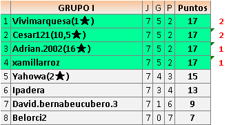 Deja un comentarioEn está página se irán publicando los resultados de las diferentes partidas, siendo ambos jugadores responsables de subirlos o de comprobar que ya hayan sido publicados insertando un COMENTARIO en la parte inferior de la pantalla (opción “Deja tu comentario”), indicando el nombre de los dos jugadores y los puntos obtenidos en la partida.